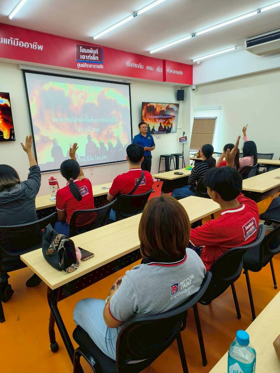 เมื่อวันที่ 15 กันยายน 2568 บริษัท โฮมเพ้นท์ จำกัด ได้จัดการอบรมการดับเพลิงขั้นต้นและการซ้อมหนีไฟประจำปี ณ สำนักงานใหญ่ โดยได้รับเกียรติจากเจ้าหน้าที่สถานีดับเพลิงและกู้ภัยคลองเตย มาถ่ายทอดความรู้และฝึกปฏิบัติจริง