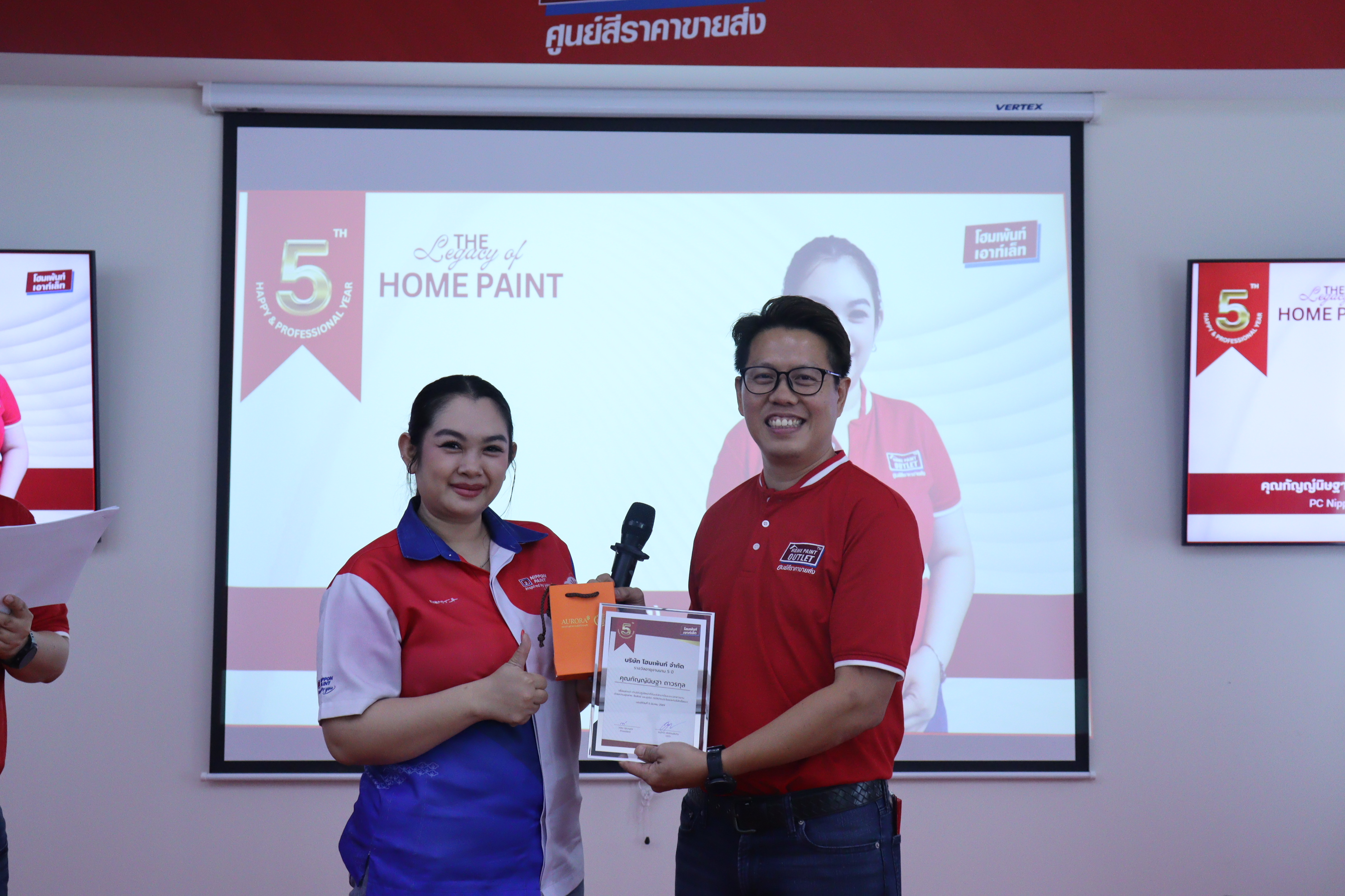 ภายในงานยังมีกิจกรรมมอบรางวัลให้กับพนักงาน รวมถึงการเป่าเค้กและกล่าวอวยพรวันเกิดจากคณะผู้บริหารของโฮมเพ้นท์ เพื่อร่วมเฉลิมฉลองวาระพิเศษนี้อย่างอบอุ่น